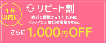 再度インディでご撮影いただける場合、お会計から更に1,000円割引となります。